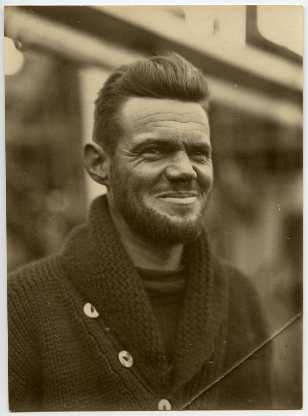 Head-and-shoulders portrait of Robert Alexander Falla, assistant zoologist on Antarctic expedition aboard the Discovery; inscribed "With regards R.A.F. June 1930" (Te Ao Mārama - Tauranga City Libraries Ms 33/5/52)